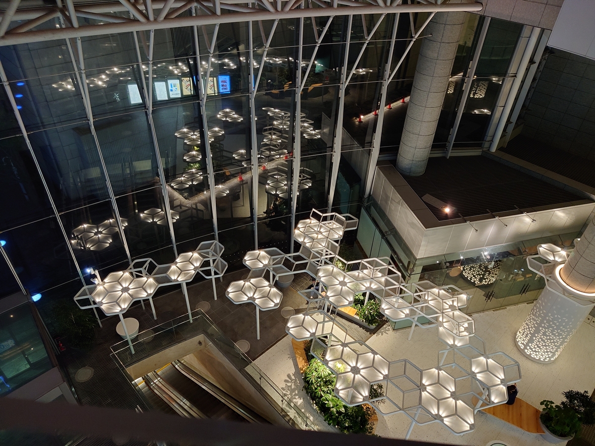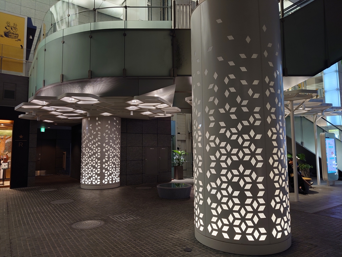 これら複数棟の超高層ビルを地下や低層基壇部で接続したものとなっており、丸の内北口ビルディングと新丸の内センタービルの間に南北を貫通する「ガレリア」や「アトリウム」、「○○広場」は、ガラスの天窓で覆われた開放的な吹き抜け空間が印象に残ります。