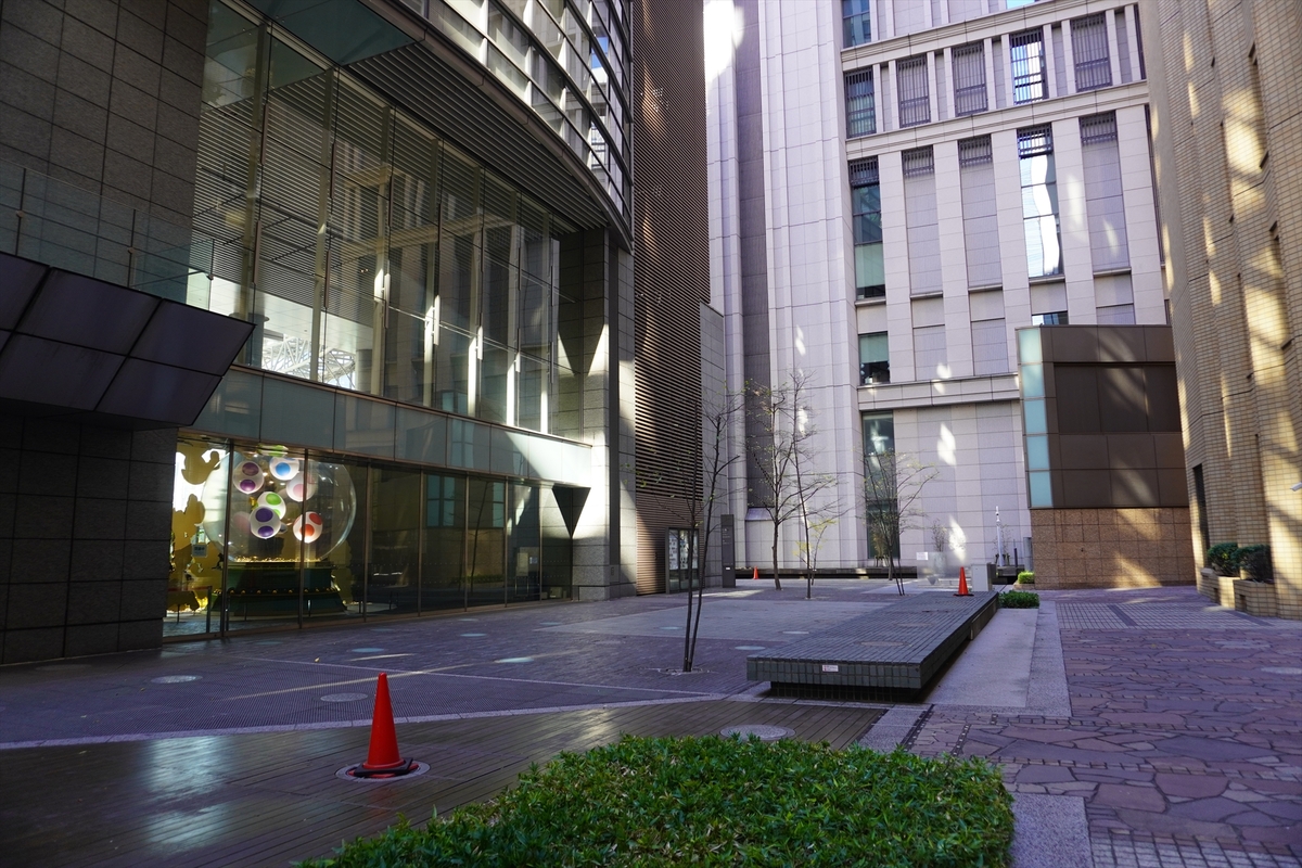 アトリウムからは、6階までエスカレーターが伸びているほか、吹き抜け内にはブリッジもあり、景色を眺めながら上へ行くことができます。また、丸の内オアゾへのアプローチとなる南側には「ゲート広場」と呼ばれる広場があり、このゲート広場には「Animal 2017-01-B2」と名付けられたブロンズ製のクマがいます。更に、日本生命丸の内ビルの北側へ進むと、ビルの谷間に「ガーデンコート」という、どの時間帯も日陰になっている夏に涼しそうな広場があります。東京駅の目の前にも関わらず、ほとんど人がいない空間があるのが不思議な感じでした。