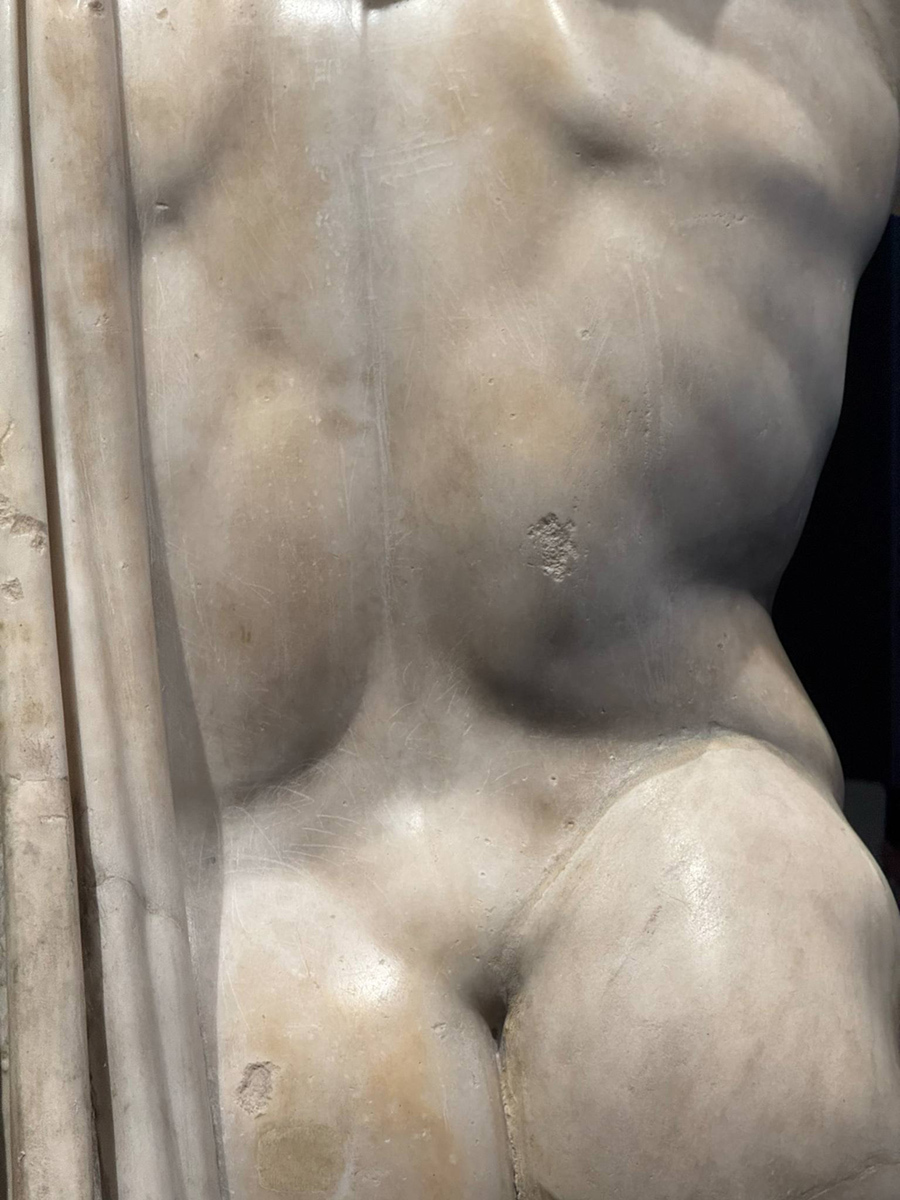 ミケランジェロの作品はルネサンスの芸術的革新を体現し、カラヴァッジョの『キリストの埋葬』やレオナルドの素描とともに、過去と現代の対話を表現している。ミケランジェロの彫刻は、解剖学的に正確な身体表現と大理石の繊細な質感が特徴だが、『復活のキリスト』は、キリストの静かな威厳と復活の瞬間をとらえ、ルネサンスの理想美を体現した傑作。生で見るのが楽しみでならない。
