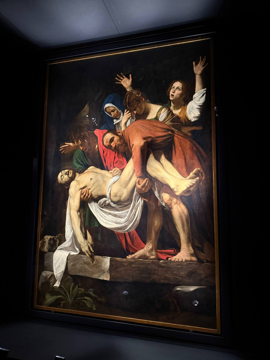 教皇庁の情報ポータルのバチカン・ニュースによると、聖年中の司牧と行事を監督し、大阪・関西万博のバチカン・パビリオンの館長を務める教皇庁福音宣教省・世界宣教部門副長官サルバトーレ・フィジケッラ大司教や、バチカン美術館のバルバラ・ヤッタ館長らによる記者会見では、ヤッタ館長が「『キリストの埋葬』は、バチカン美術館が所蔵する唯一のカラヴァッジョの作品として、同館の絵画コレクションの中心をなす重要なものである」と強調。