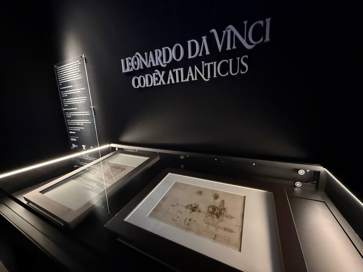イタリアパビリオンのテーマ「Art Regenerates Life(芸術は命を再生する)」に沿い、レオナルドの作品はルネサンスの芸術と科学の融合を象徴している。「アトランティックコード」はレオナルドが残した1119枚のシートからなるコレクションで、科学(解剖学、物理学)、技術(機械、飛行装置)、芸術(スケッチ)、建築(都市計画)など幅広い分野のメモや素描を含む。1637年以来、ヴェネランダ・アンブロジアーナ図書館が所蔵している。