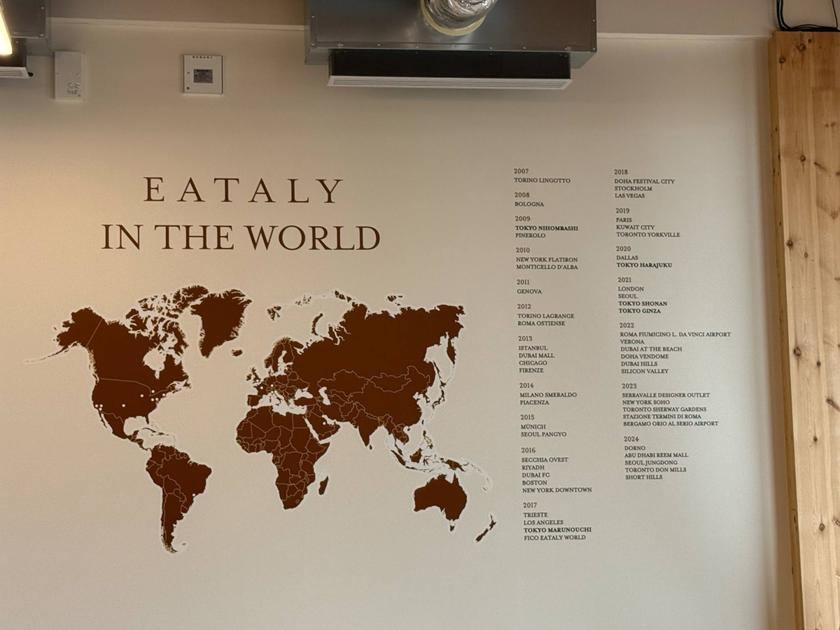 世界初のイタリアン専門の多機能マーケットプレイス「イータリー・トリノ・リンゴット」の誕生以来、イータリーはイタリア国内および世界各地に40以上の店舗を展開している。