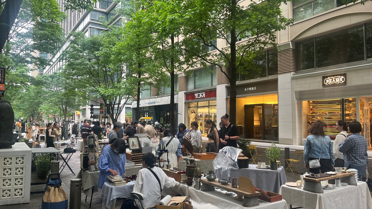 丸の内仲通りで蚤の市開催