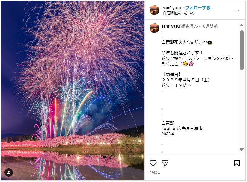 白竜湖花火inだいわ
