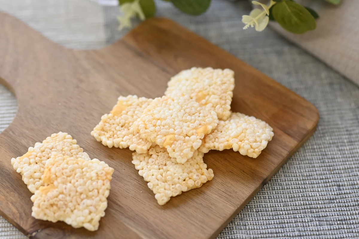 スイーツ女王としてメディアでも話題のお笑い芸人「ぼる塾」田辺智加さん監修のもと開発した、お米の粒を活かしたつぶつぶの生地にチェダーチーズを混ぜ込んだ軽やかな食感の揚げおかきです。お米と相性の良い米油で揚げ、シンプルに塩味で味付けをした、おかきの香ばしさとチーズの香ばしさのどちらも楽しめる揚げおかきとなっています。