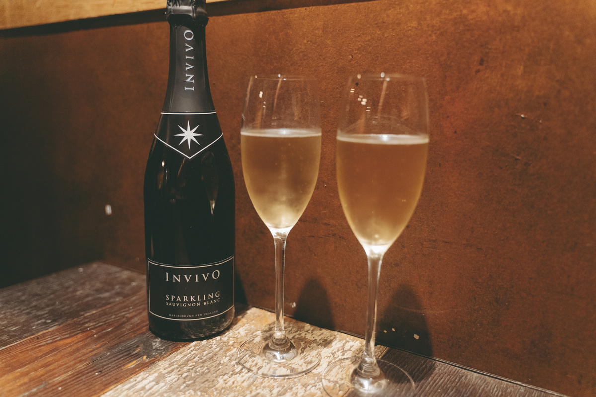 乾杯には、ニュージーランド産の白ワイン「インヴィーヴォ」をチョイス。柑橘系の爽やかな香りとトロピカルな果実味が心地よく、一口目から南半球の風を感じるような美味しさです。