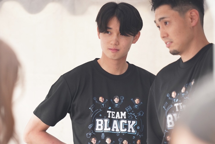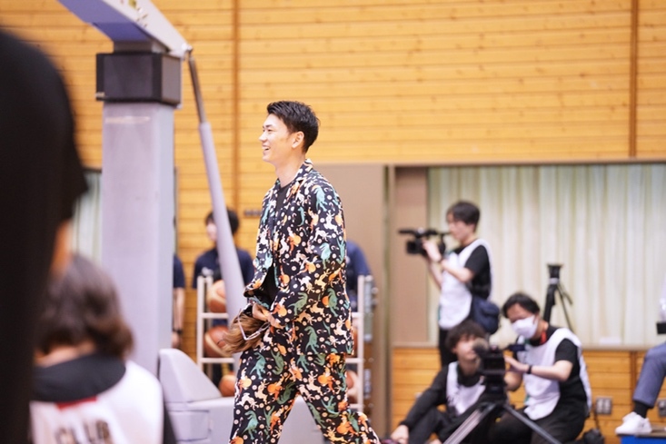 開演後は選手とスタッフが「チームWHITE」と「チームBLACK」に分かれてさまざまな企画で対決。幼少時の写真を使ったクイズや変装してかくれんぼ、チームで馬跳びや縄跳びを行うリレー、最後には特別ルールのバスケ対決も行われた。