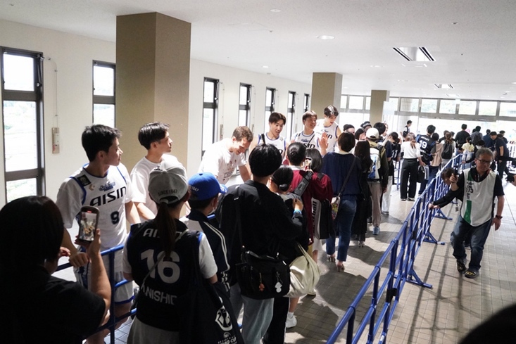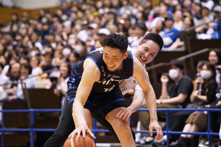 バスケ対決は、終了のブザーと共に逆転シュートが決まる劇的な展開で「チームWHITE」が勝利。普段は見られない選手やスタッフの笑顔が印象的だった。終演後には選手とスタッフがハイタッチでお見送り。ブースターにとって記憶に残る一日になったはず。