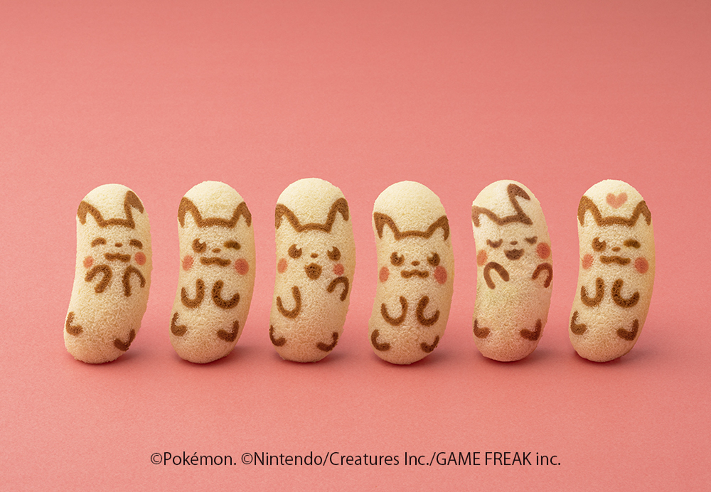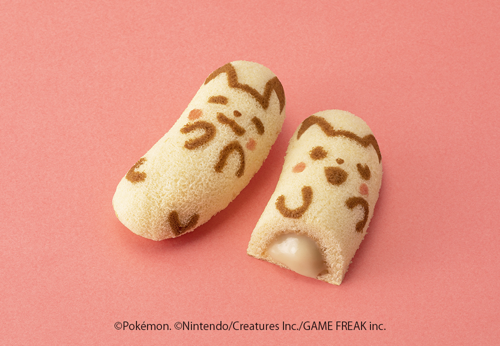 ピカチュウ模様に焼きあげたふかふかスポンジケーキに、ポケモンの世界に出てくるきのみ「ナナのみ」をイメージした“ナナのみ風とろ~りバナナカスタードクリーム”がたっぷり。スポンジケーキの模様は6種類あり、ごきげんなハート模様の“ハート付きピカチュウ”はときどきしか出現しないレアピカチュウです。