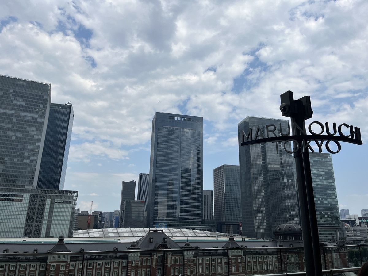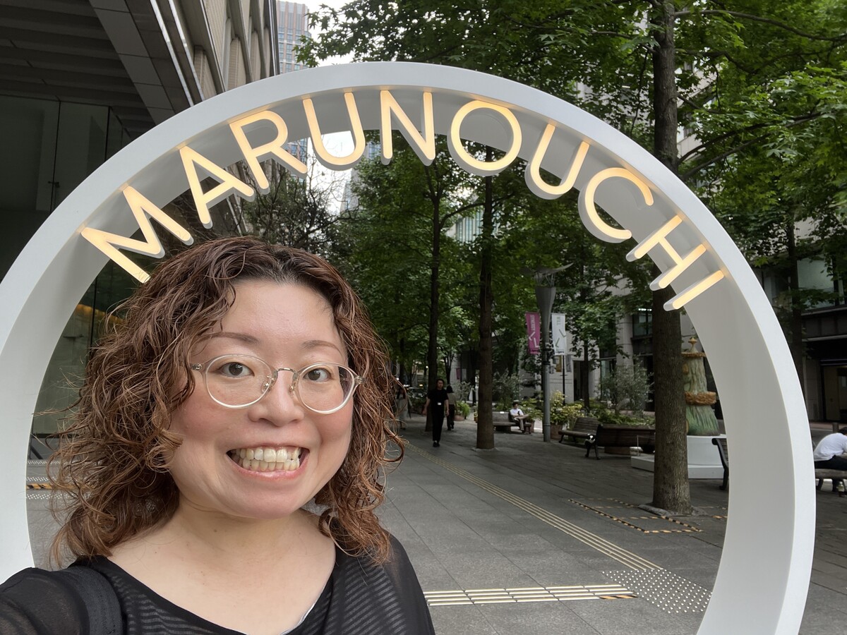 街路樹を背景に、人物なしで「MARUNOUCHI」のところを撮ったらもっと映える写真になったかも。