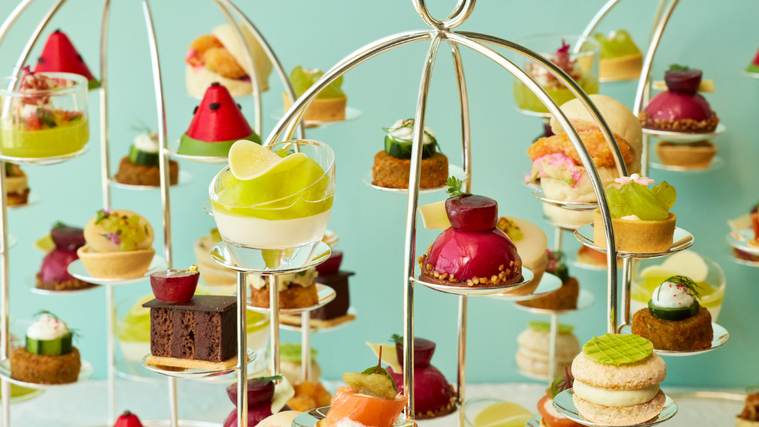 瑞々しいマスカットに、芳醇なスイカやメロンをテーマにした6種類のセイボリーと7種類のスイーツが登場。