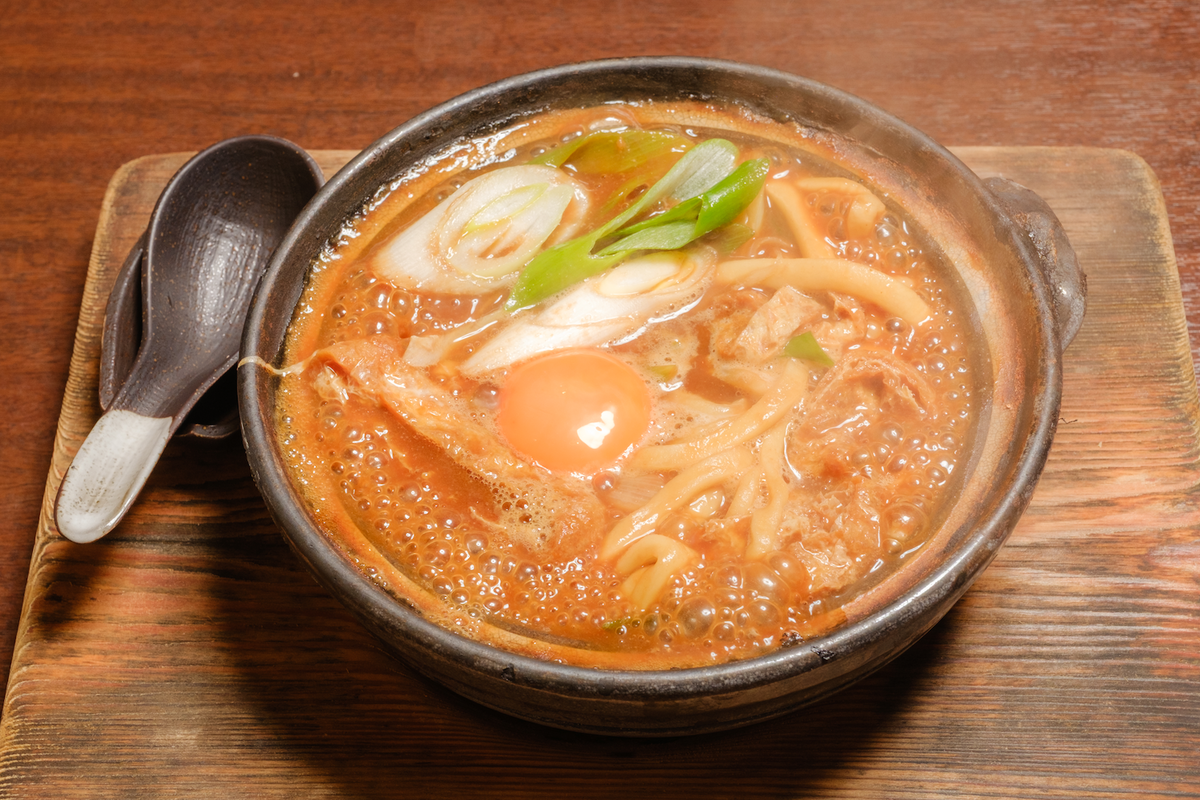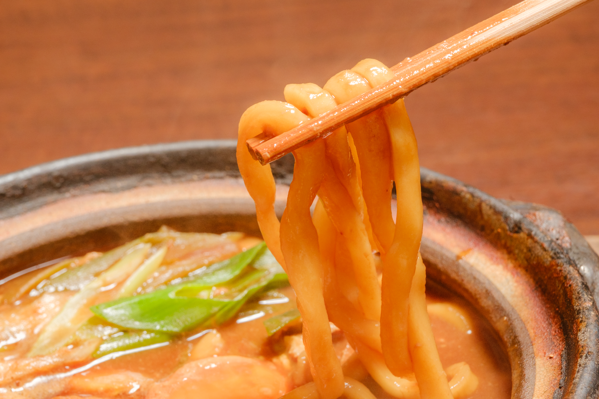 そして、味噌。八丁味噌を中心とした赤味噌の深いコクは、濃すぎるように思うかもしれませんが、口に含むと意外にも丸いのですね。味噌そのものの旨味が、味噌煮込みうどんの土台になっています。