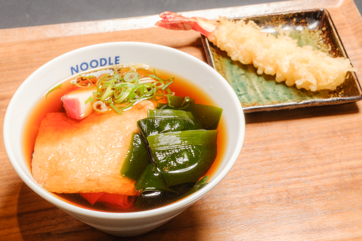 「やみつきなごやめしセット(赤つゆきしめん、きつね揚げ、わかめ、熱田蒲鉾、海老天)」(お食事チケット3枚使用)
