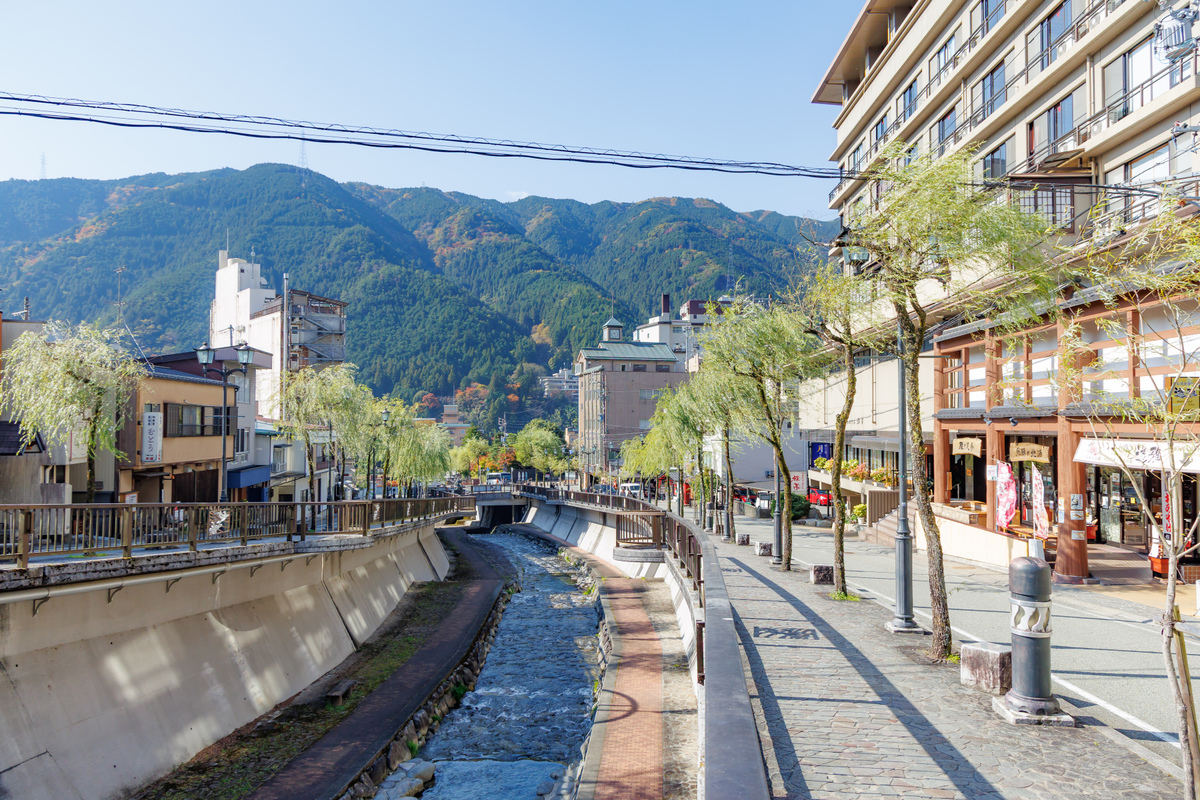 飛騨川沿いに広がる「下呂温泉街」も、岐阜県の名スポットです。古くから続く老舗のほか、近年では、SNS映えスイーツや、みやげ物を取り扱う店が増加しています。つい寄りたくなる店が軒をつらね、まち歩きにはぴったり。好みの3軒で日帰り入浴が楽しめる「湯めぐり手形セット」を入手して、温泉を楽しみながら出かけましょう。