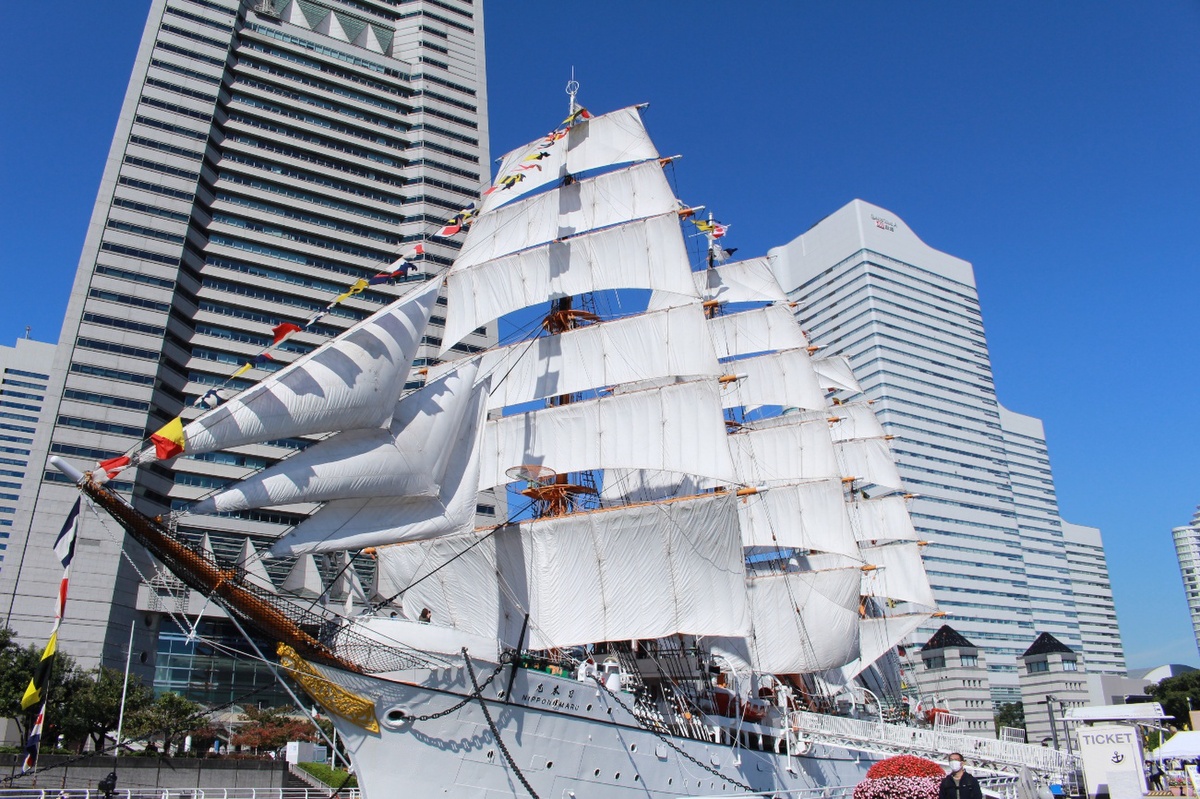 桜木町駅から横浜ランドマークタワー方面へ歩いていくと、見えてくるのは「帆船日本丸」。1930年(昭和5年)に建造され約54年間練習船として活躍したこの船は、今年で船齢95年を迎え、国の重要文化財に指定されており、横浜を訪れる多数の観光客を華やかに迎え入れます。