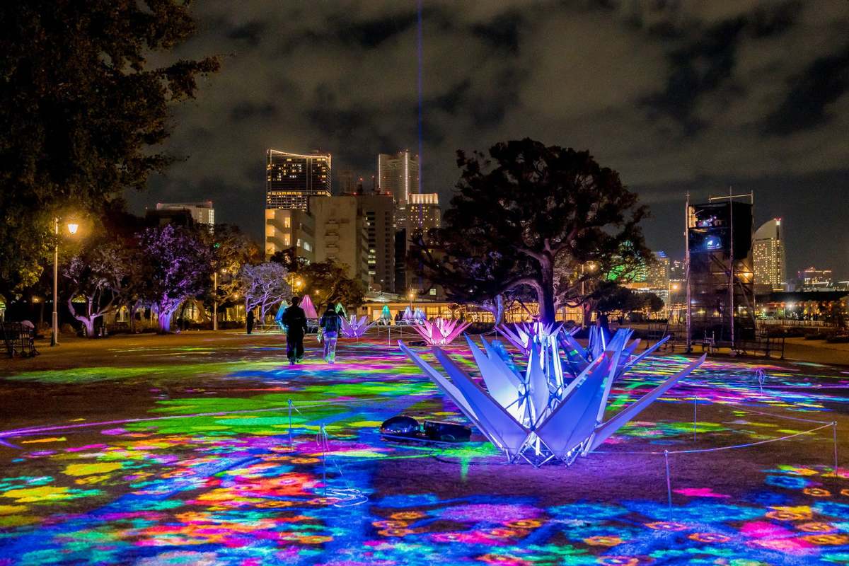 山下公園では、観客の動きに反応する光のインタラクティブ・デジタルアートが全長250mにわたって実施されている。花をモチーフにした光輝くオブジェ「スターツリー」の中心に花開くオブジェ「スターフラワー」が設置され、まるで光の庭園のような雰囲気に。さらに横浜赤レンガ倉庫とのコラボエリア「Christmas Gate」や、映画『アバター:ファイヤー・アンド・アッシュ』との連携により、横浜全体が一体となって光に包まれる。