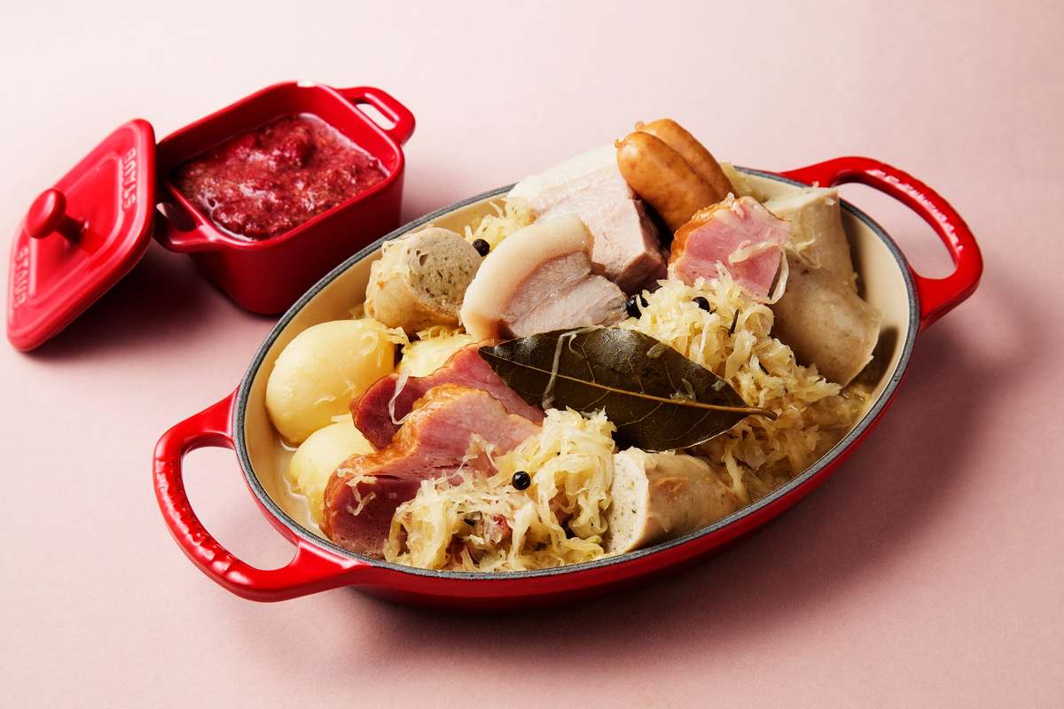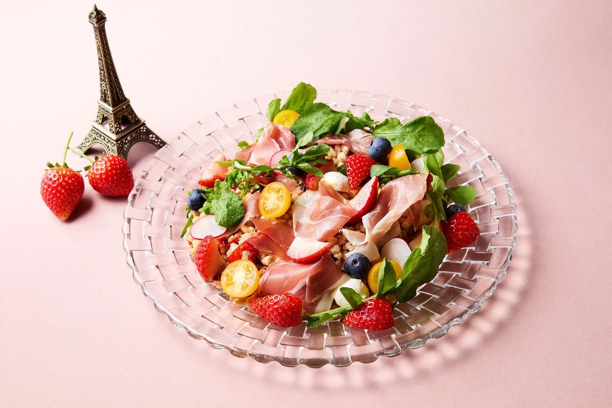 フランスで人気の前菜「フランス産生ハムといちごのサラダ」など、フランスの地方ごとに受け継がれる伝統料理が登場。ストロベリーマスタードをアクセントに、キャベツやソーセージ、ジャガイモなどをじっくり煮込んだ「シュークルート」など、旬のいちごの魅力を引き立てるメニューもぜひ味わいたいところ。
