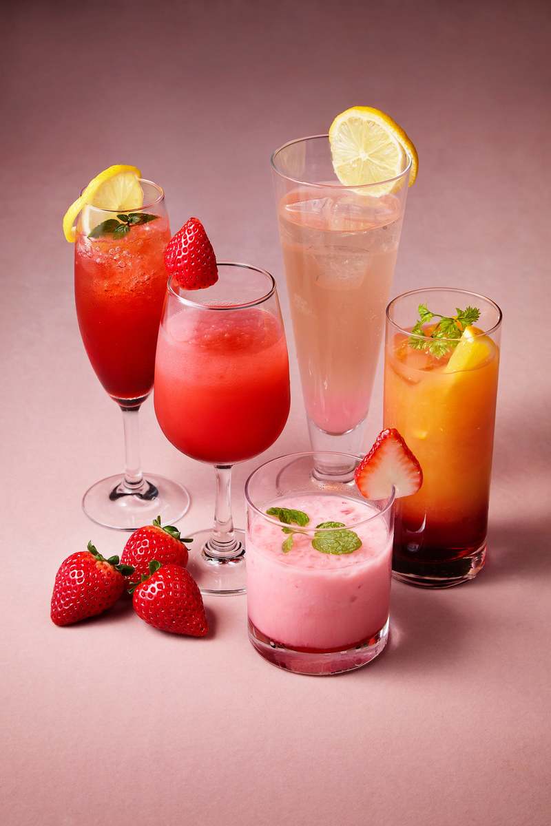 自分だけのオリジナルデザートを作ることができる「ストロベリーパルフェ工房」も展開。あまおういちごミルクやギモーブ、ルビーチョコレートなどを使って自分だけのパルフェを作ることができる。さらに、フリーフロープランとしていちごリキュールを使ったオリジナルカクテルも楽しめる。