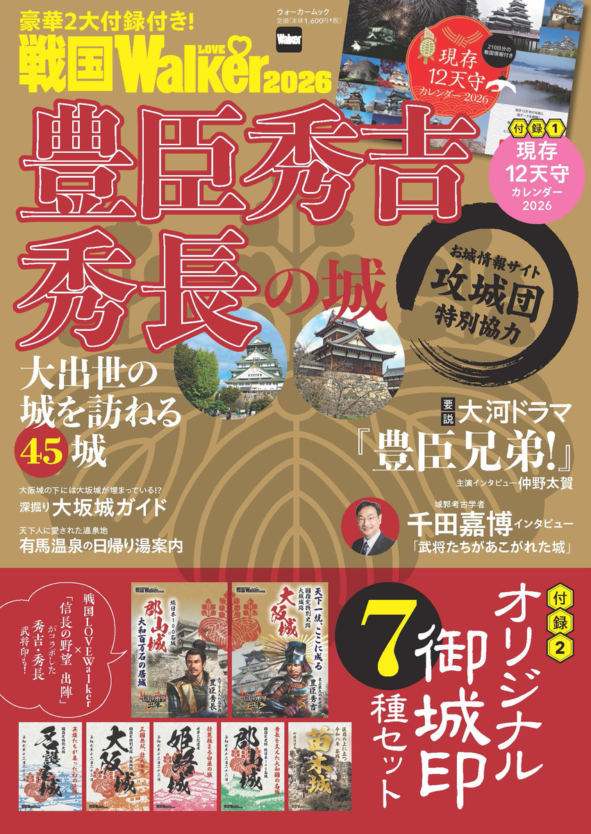 豊臣秀吉・秀長の軌跡をお城からたどる「戦国LOVEWalker2026」が12/22発売!この連載では戦国武将ゆかりの城や注目イベント、SNS分析など、大河『豊臣兄弟!』とともに様々な角度から戦国時代と天下人兄弟の魅力を掘り下げる。今回は前回の「城・城址ランキング」に続き、近年熱い注目を浴びている「御城印」とともに言及された城名ランキングをお送りする。城としての人気もさることながら、四季折々の風物を織り込んだ限定御城印や人気キャラクターとのコラボでも注目される御城印。新しいお城巡りの楽しみ方を見てみよう。