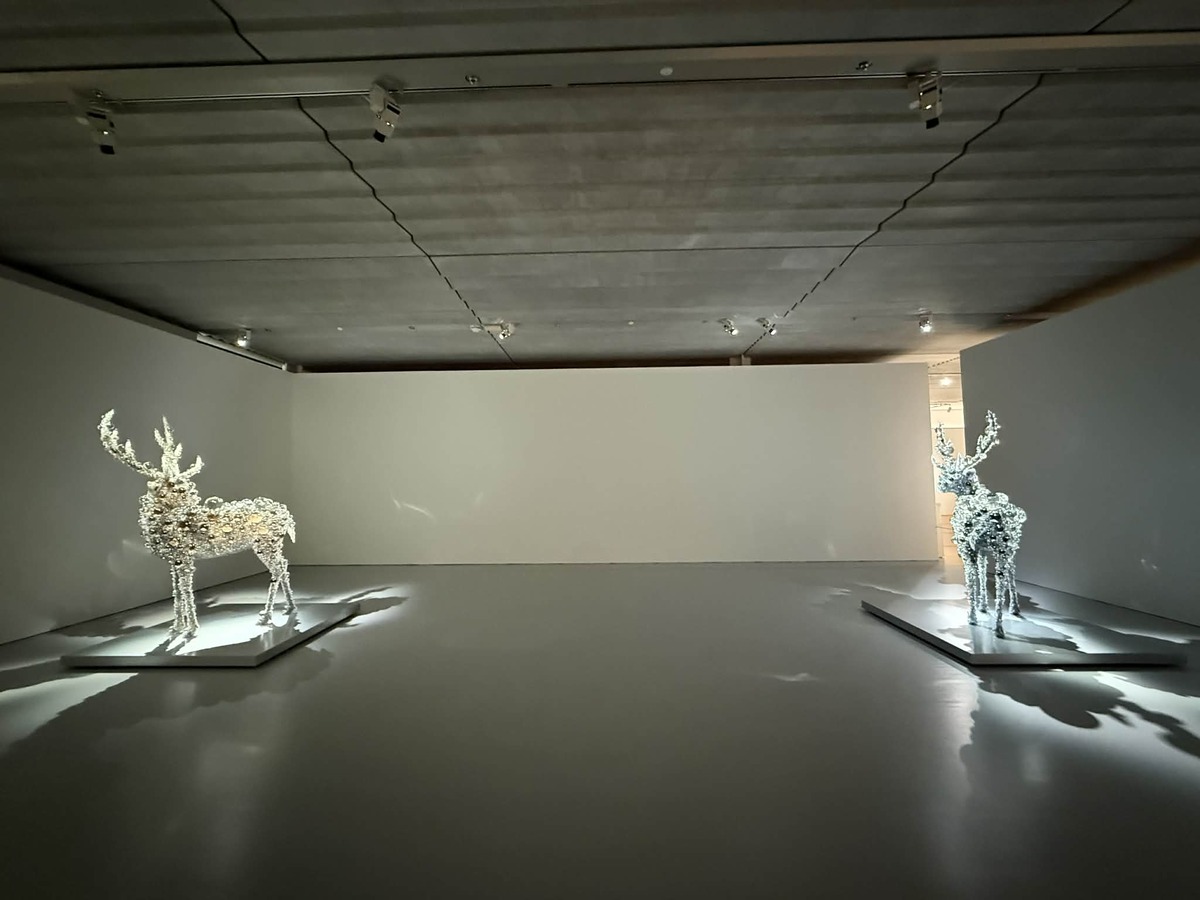 視点によって異なる距離感は、鑑賞者と作品との間に生まれる関係性や、作品が持つ意味合いを再考させることになる。2体の「PixCell-Deer」を対峙させ、不可視を可視化した空間が展覧会のエピローグを飾っている。