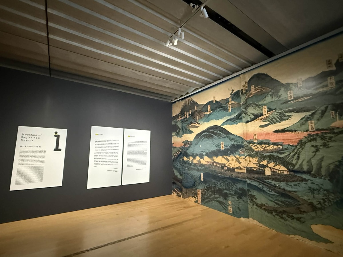 第一章「はじまりの山ー箱根」。険しい山々と富士山を望む芦ノ湖周辺は、修験道の場として人々の信仰を集め、やがて街道の要衝として宿場が整い、湯治(とうじ)や旅の文化が発展した。