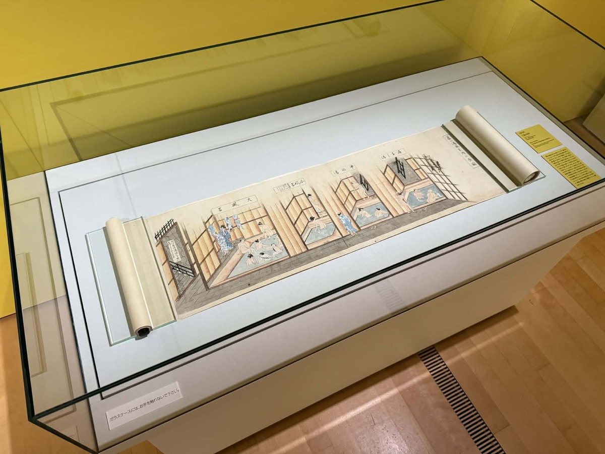 文窓・弄花≪七湯の枝折≫(1811年。文化8年。紙本。箱根町指定重要文化財。箱根町立郷土資料館)。江戸時代の箱根七湯のいわゆるガイドブックで、文窓と弄花という二人の文人が作った。「蓋の湯風呂内の全図」では、芦ノ湖のほとりにあった芦之湯の共同浴場が詳しく描かれている
