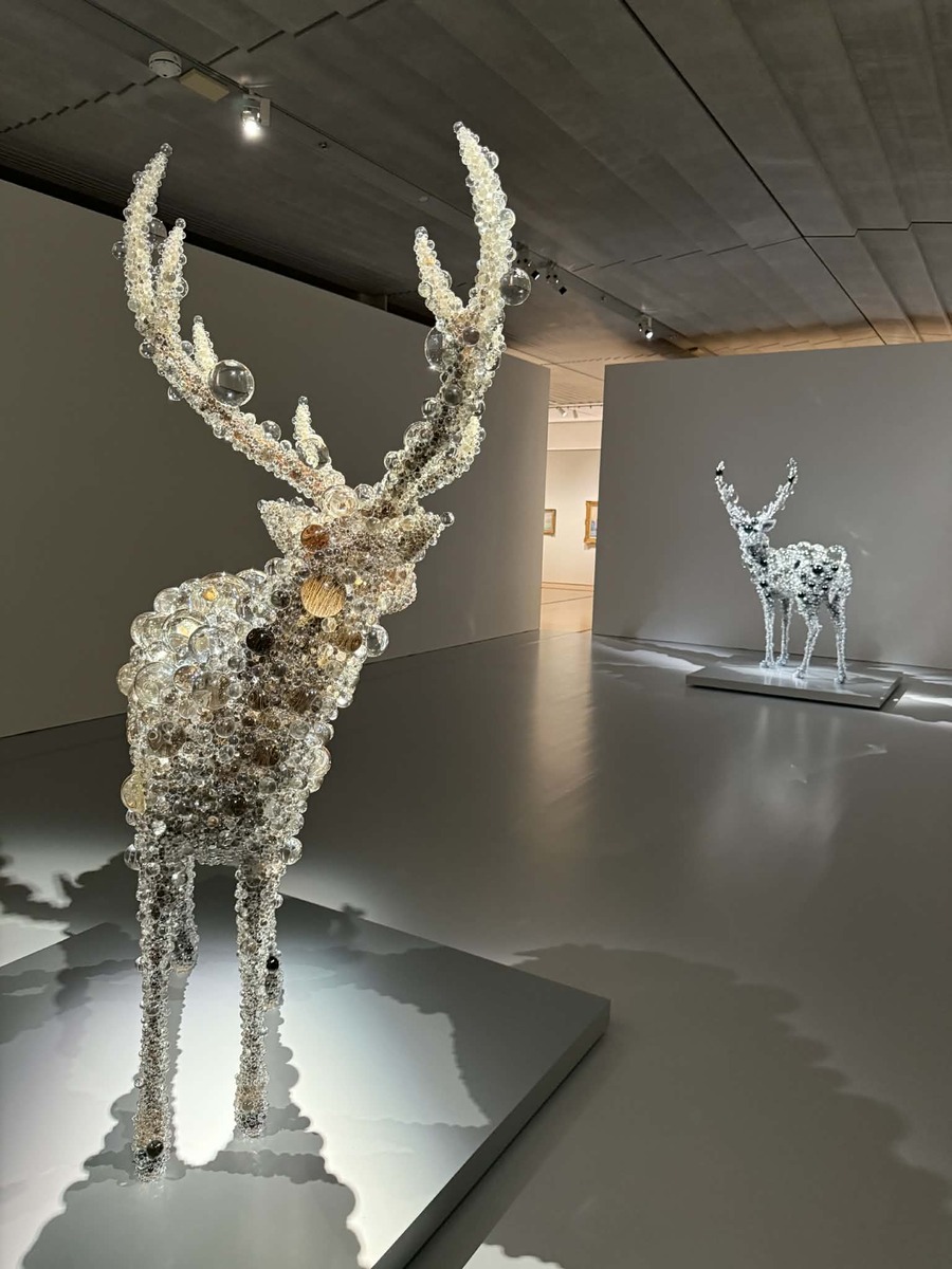 展示内容については「本展覧会では、アートにおける飛躍する力に光をあて、私たちの存在と感性をゆさぶる絵画、彫刻、工芸、インスタレーション作品を紹介します。古くから旅人を惹きつけてきた『箱根』の地を起点に、過去と未来、あるいは彼方へとつながる想像の旅を通じて、静かに、あるいは力強くわきあがる作品の響きと共鳴し、躍動する創造の鼓動をご体感ください」ということで、スプリング=跳ねる、春、泉などの意味から、冬から春にかけてのダイナミックな展示が心を揺さぶる。