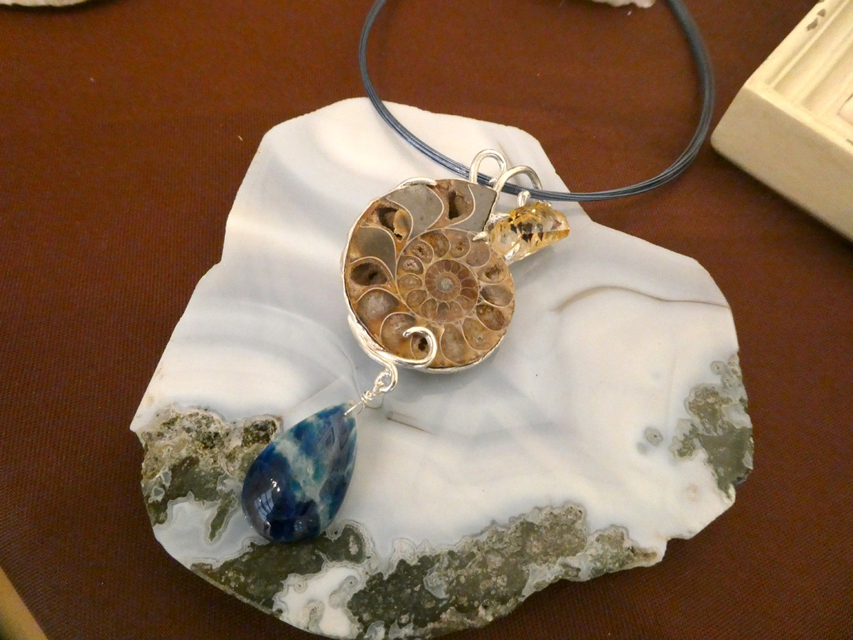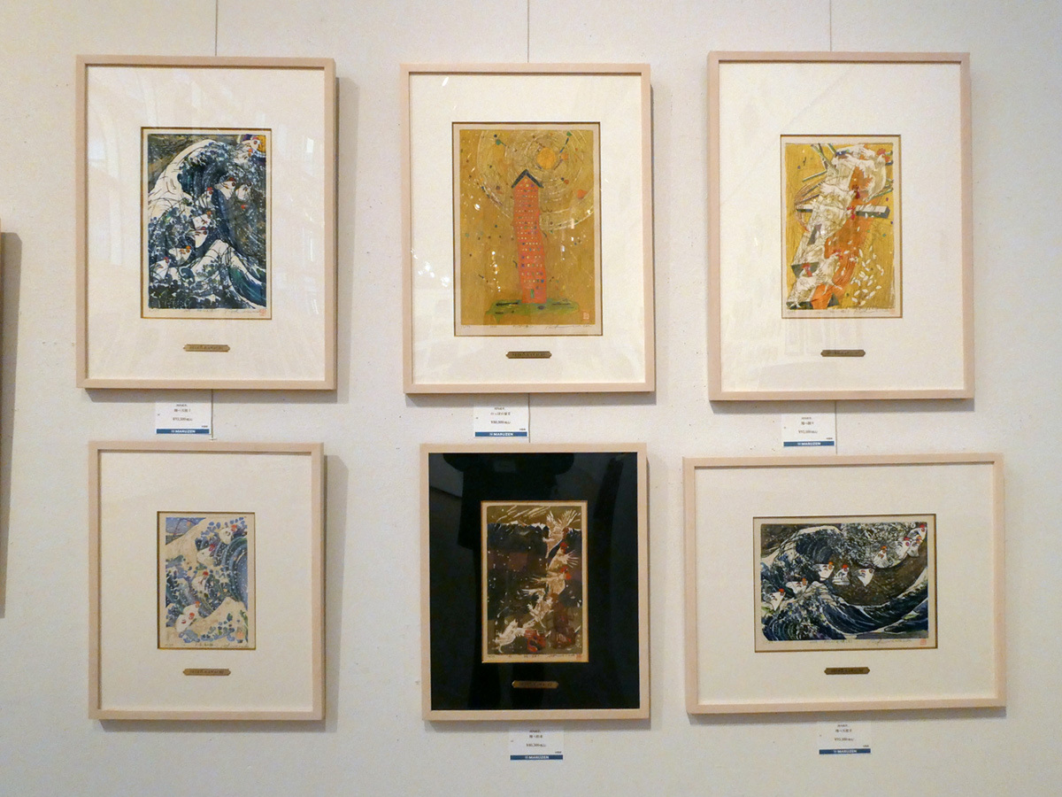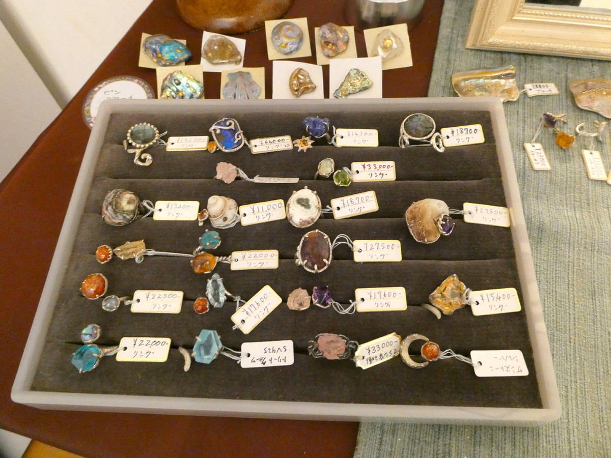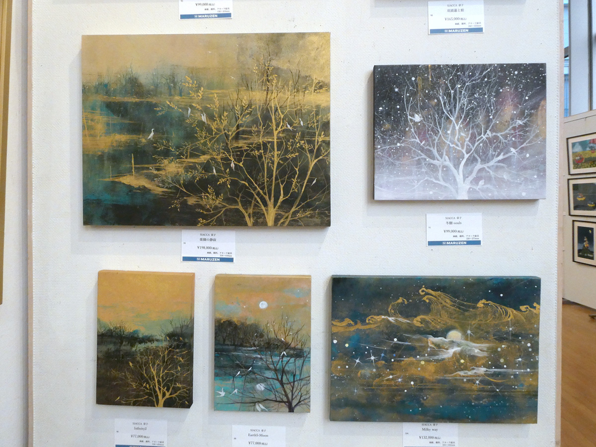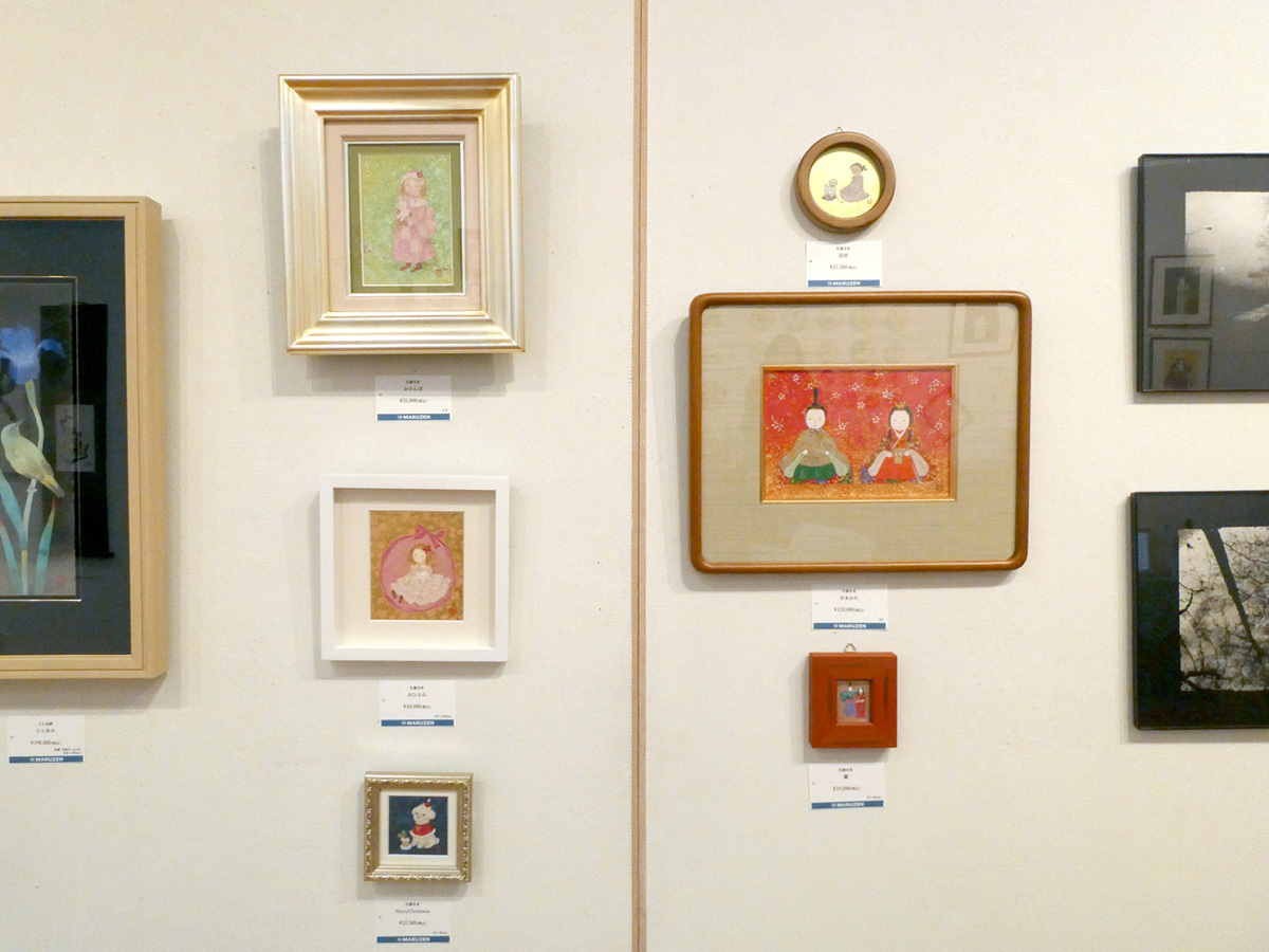 展示作品は油彩やアクリル画、版画などの絵画のほか、ジュエリー、クラフト、絵皿時計など多種多彩な作品が並んでいる。