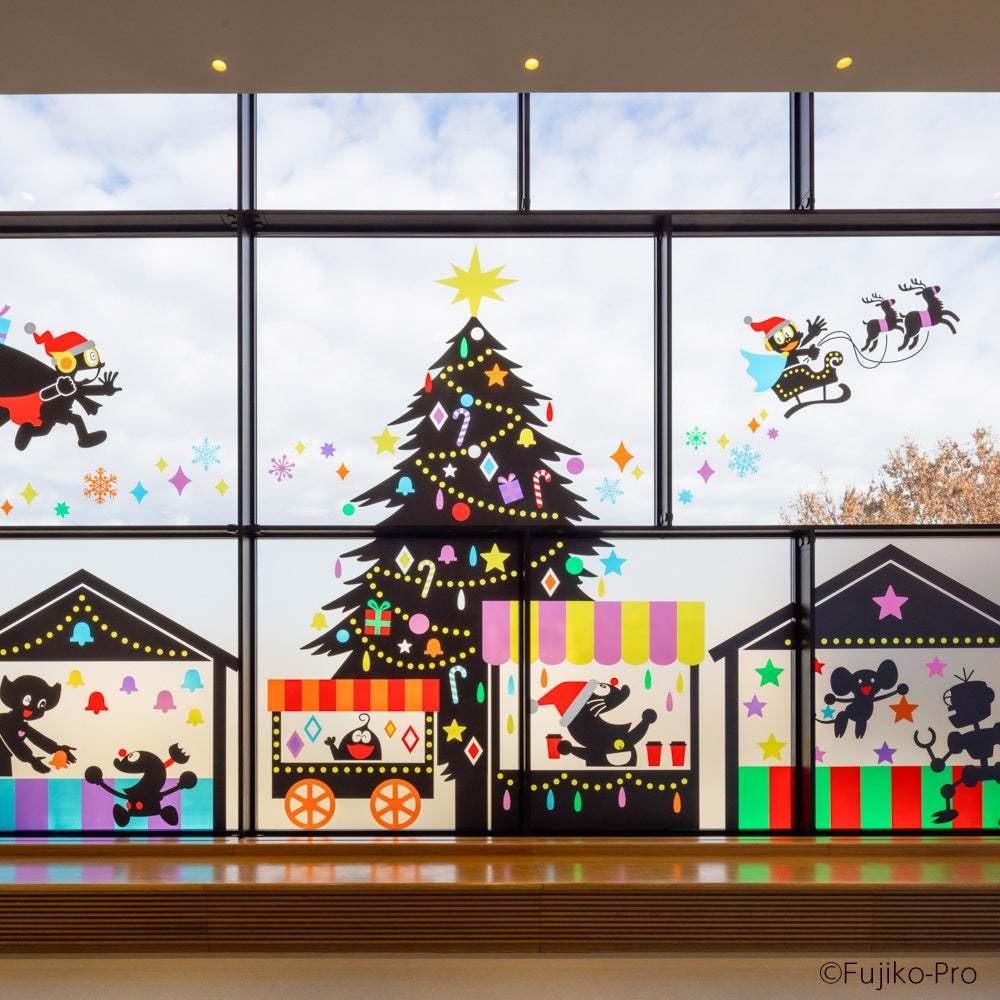 ミュージアムの1階では『ドラえもん』のクリスマスにまつわるお話「サンタメール」の原画展示を実施。館内各所にはドラえもんやコロ助をイメージした4つのクリスマスツリーが設置され、2階「みんなのひろば」にはFキャラクターたちのシルエットが大窓に登場。
