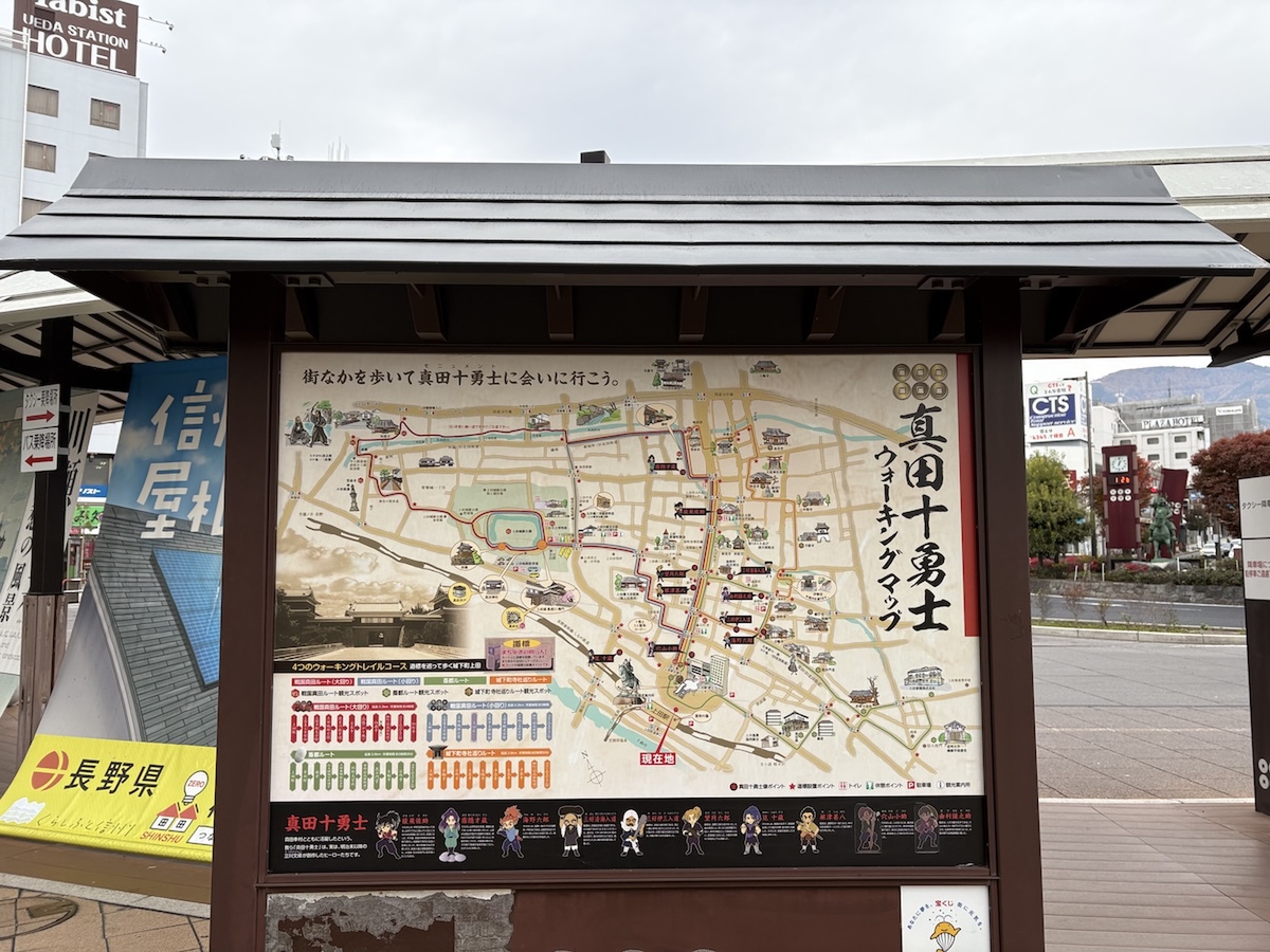 上田についてからよく目にする六文銭のモチーフ。これは真田家の家紋で、三途の川の渡し賃(六文)に由来し、戦場で死んだ後も無事にあの世へ旅立てるようにという願いと決意が込められているそうです。