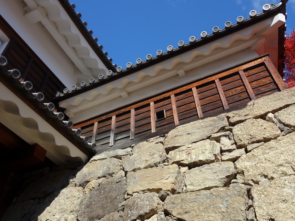 紅葉を眺めつつ公園内をてくてく歩くと、東虎口櫓門に到着! ここから先は本丸と呼ばれる公園の中心部となります。