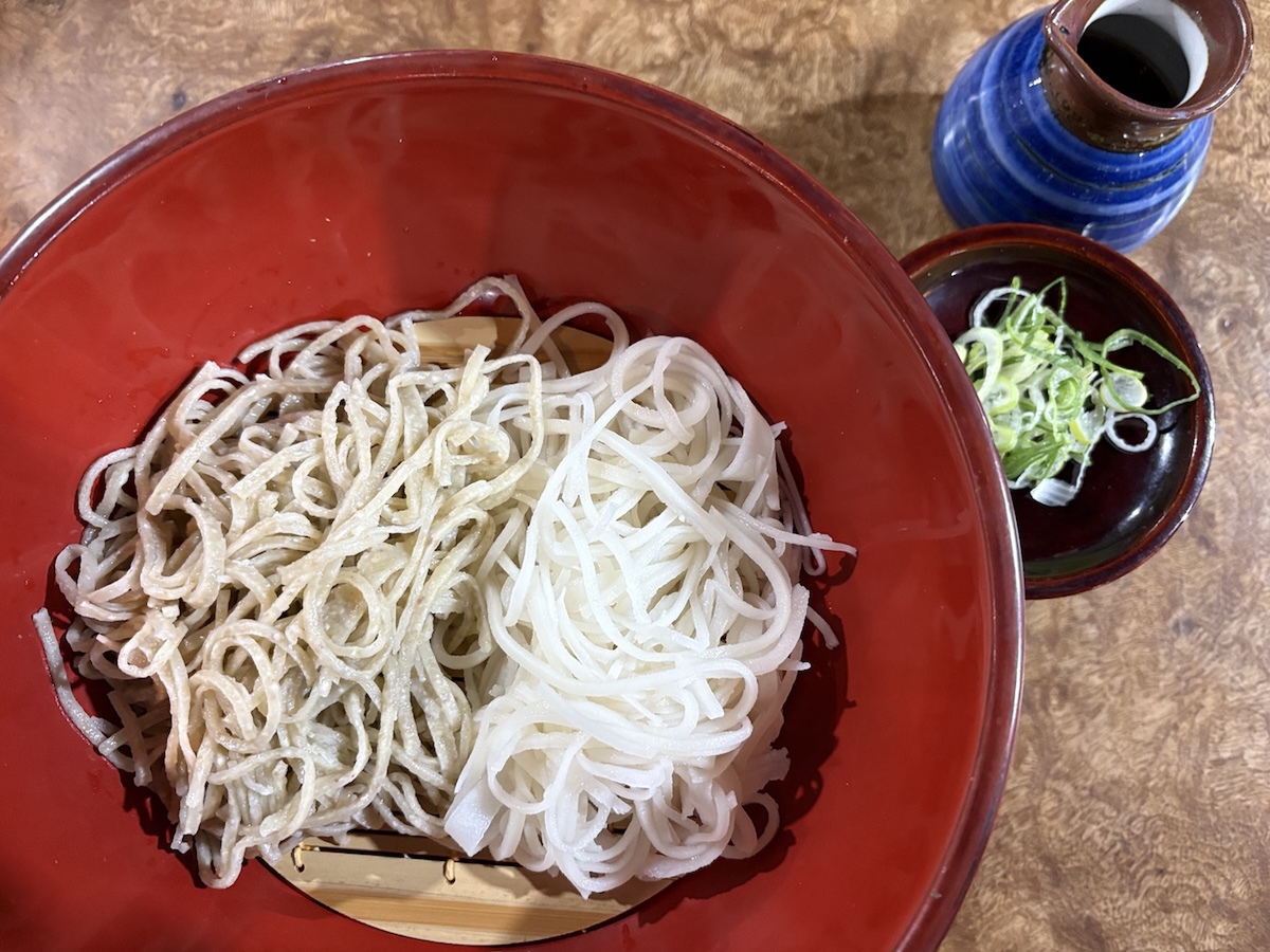 メニューには書いてありませんが、発芽そばと更科そばをあいもりにしてもらえます。これがどちらも美味! 大盛りにすればよかったと心底思いました。蕎麦は短く切れているのが特徴で、蕎麦粉本来の風味を感じました。