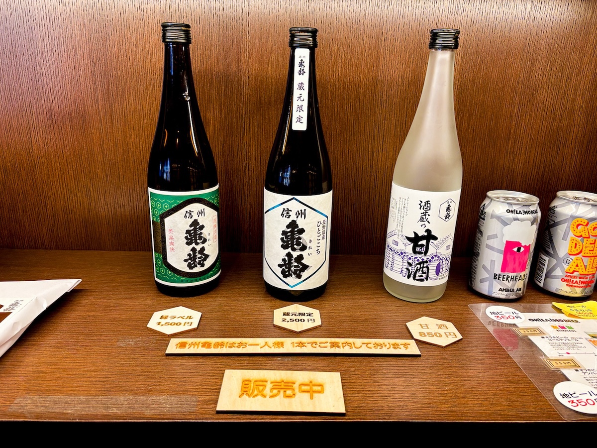 上田といえば日本酒も忘れてはいけません。柳町には、寛文5年(1665年)創業という歴史を持つ老舗の酒蔵「岡崎酒造」があります。代表銘柄は「信州亀齢(しんしゅうきれい)」で、フレッシュでフルーティー、そしてやや甘口なのが特徴です。