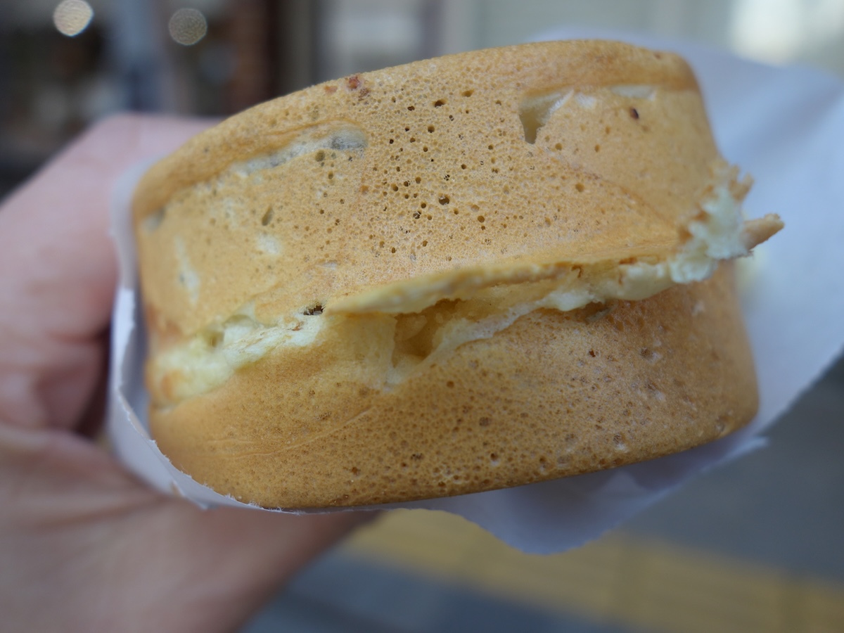 上田といえば、富士アイスの「じまんやき」も有名です。いわゆる「大判焼」「今川焼」でしょうか、あんこかカスタードが選べます。どちらも100円ポッキリ。