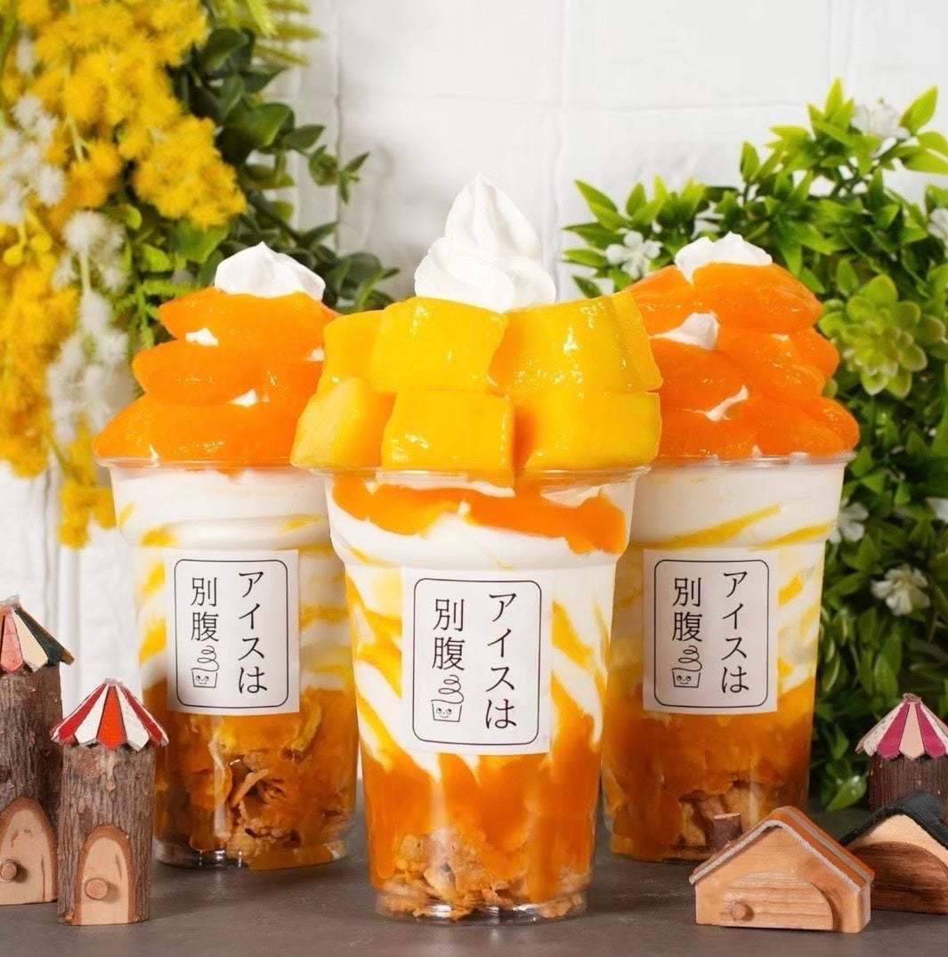 「アイスは別腹」は、映える盛り付けのパフェやインスタ映えする店内装飾を特徴とした店舗だ。運営は姫路で1号店をオープンした大学生の双子、岡本拓也氏と直也氏が手掛ける。2021年に始めたこの店舗は、すぐに話題となり1日最高780個を販売する人気を集めている。