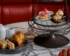 アフタヌーンティーは、「フローラルインフュージョン ~花々が目覚める春~」をテーマに、7品のスイーツと5品のセイボリーで構成。バラとライチ、フランボワーズを組み合わせた「イスパハン」や、カシスとバニラとスミレの風味が香る「エモーション アンヴィ」などが並ぶ。セイボリーは春の芽吹きを思わせる軽やかなコース仕立て。「ロブスターロール」や「イベリコハムとトリュフのトースティ」など春らしい軽やかな一品が味わえる。