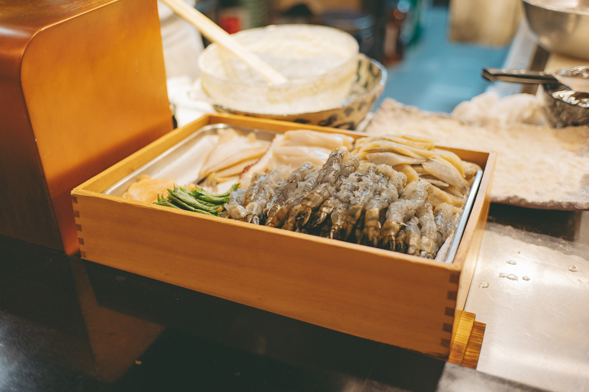 目の前で出来上がる極上天丼に舌鼓