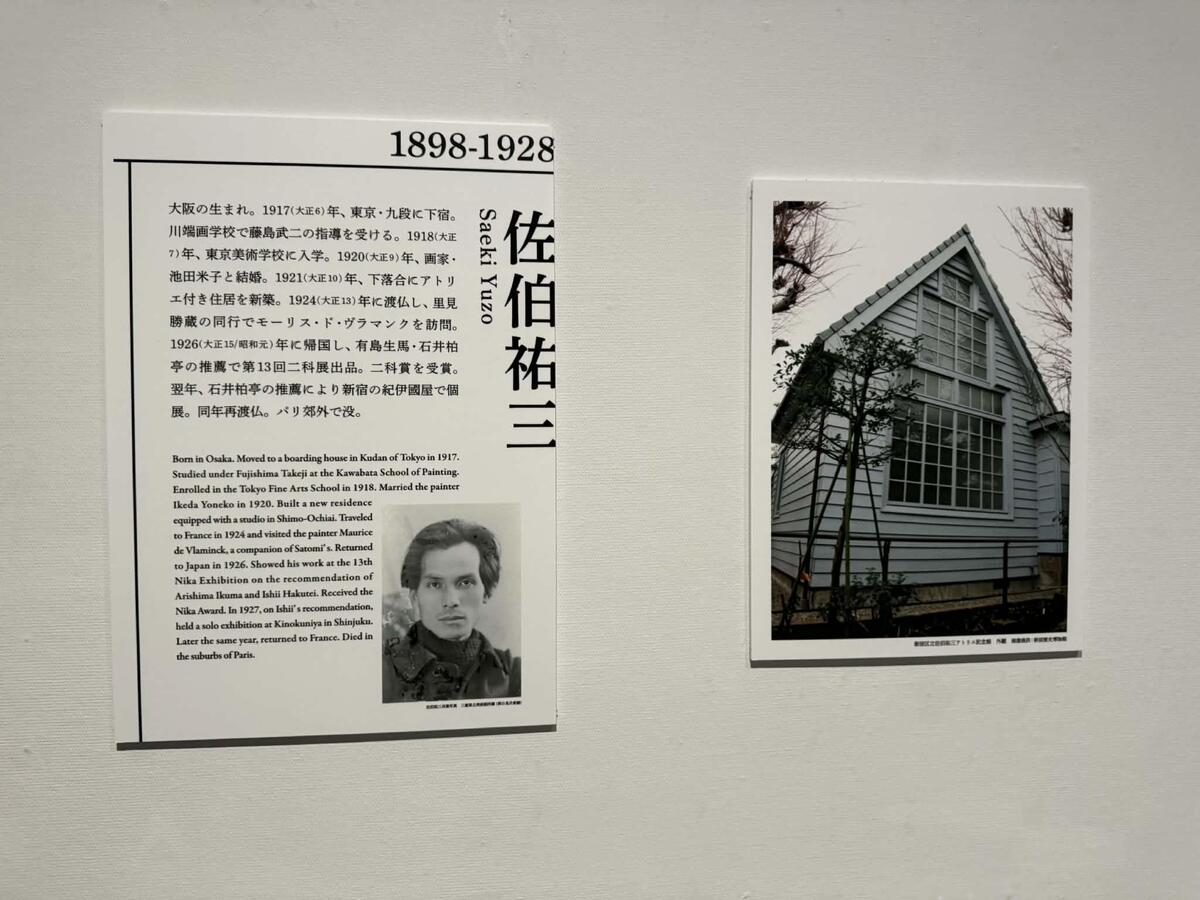 1923年の関東大震災以降、地盤の固い山の手(新宿・下落合周辺)には多くの画家が移り住んだ。 ここでは、新宿・下落合にアトリエを構え、パリとこの地を往復しながら創作に命を燃やした佐伯祐三を特集。開発が進む前の新宿周辺の風景を描いた《下落合風景》シリーズなど、佐伯独特の激しい筆致の中に、当時の「武蔵野の面影」と「都市化の予感」が交錯する様を見ることができる。