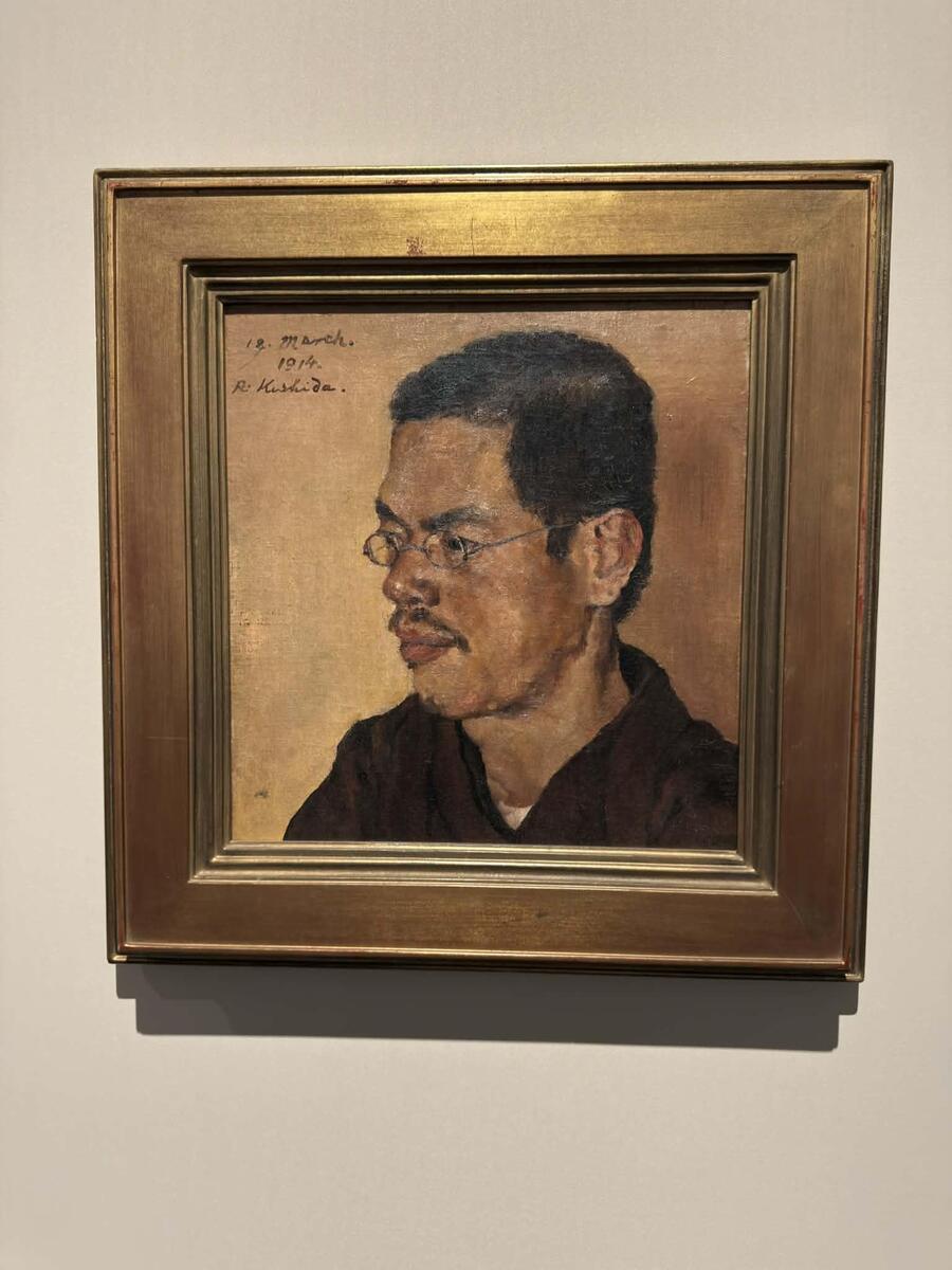 岸田劉生《武者小路実篤像》(1914年、油彩・カンヴァス)。東京都現代美術館所蔵。岸田劉生は、白樺派の影響をいち早く吸収し、新進作家によるヒュウザン会(フュウザン会)を立ち上げた。また、新宿ゆかりの作家・武者小路実篤とさかんに交流し、実篤の小説の装幀を数多く手がけた。劉生は、大正時代に興隆した細密描写の系譜を代表する存在でもあり、肖像画の名手であった。大勢の友人らを描いた肖像画は、「岸田の首狩り」と名されるほどの代名詞である