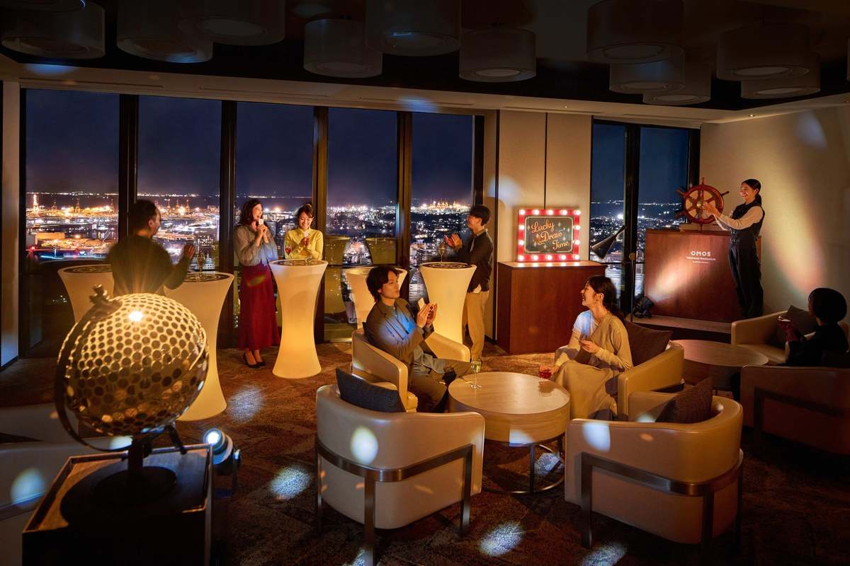 館内には、日中は港町の輝く景色を、夜には眼下の夜景を一望できるパブリックスペース「OMOベース」があり、訪れる人々を感動させる。宿泊者専用のラウンジでは、セルフカクテルを楽しみながら窓一面に広がる夜景を堪能できるイベント「ローカルリズムナイト」が毎晩開催される。