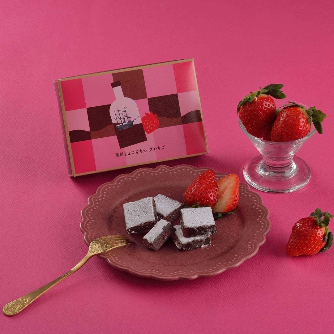 「黒船しょこらキューブ いちご」は、香り高い2種の苺のお酒とドライストロベリーを使用した、クラシックショコラをベースにした新たなスイーツ。濃厚な甘みの苺リキュールと香りを引き立てる苺ブランデーが、一粒の中に苺の可憐さと大人の余韻を醸し出している。こちらは6個セットで1,275円だ。