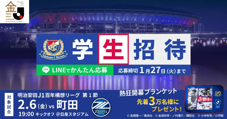 特別シーズンとなる「明治安田J1百年構想リーグ」の開幕戦は、日産スタジアムにて2月6日(金)19時キックオフ、FC町田ゼルビア戦です。