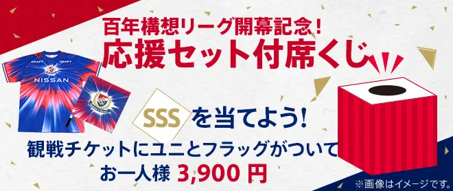 試合当日に席の抽選ができる運試しチケットに、応援セット(ユニとフラッグ)がついたスペシャルパッケージです。
