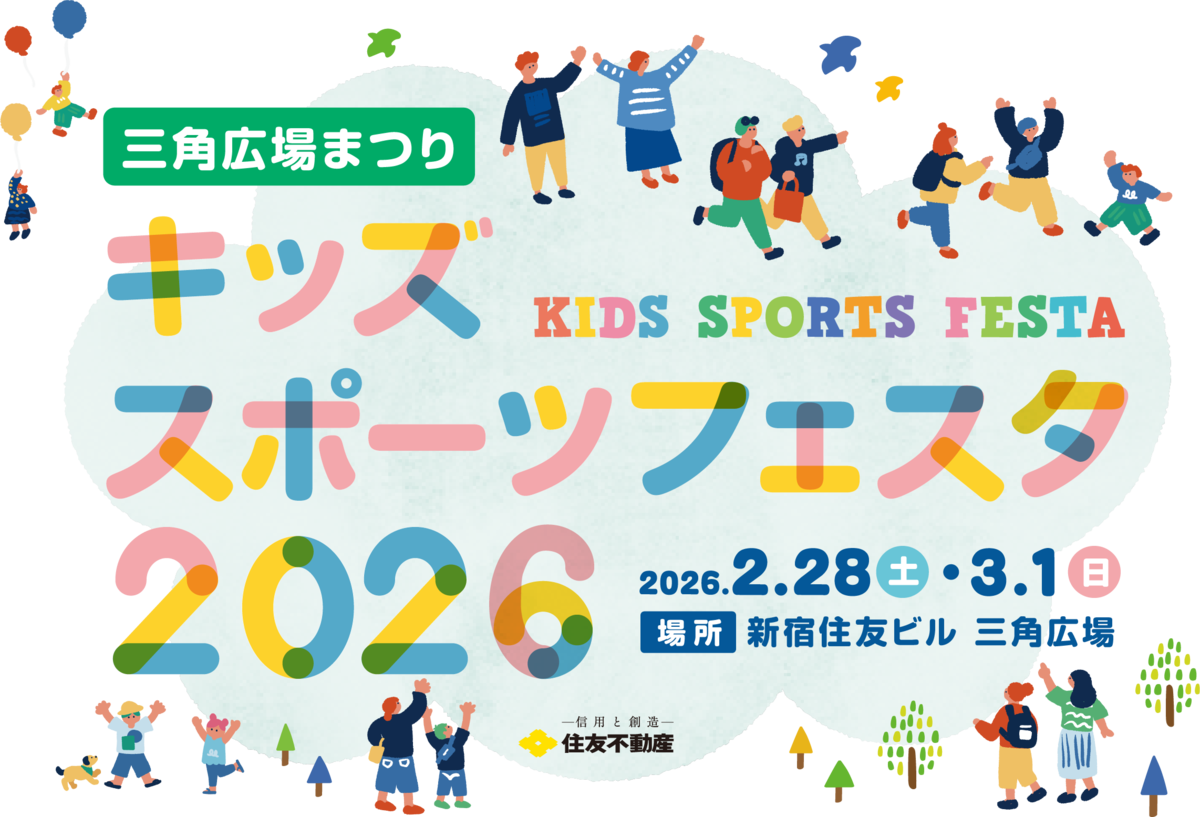 2月28日と3月1日、新宿住友ビルの三角広場で「キッズスポーツフェスタ2026」が開催する。様々なスポーツの競技体験ができるイベントで、入場は無料。一部の有料コンテンツについては事前予約が可能だ。