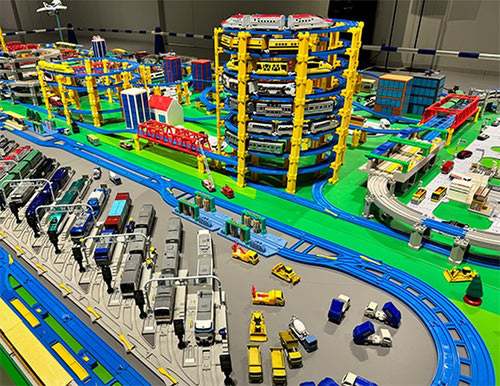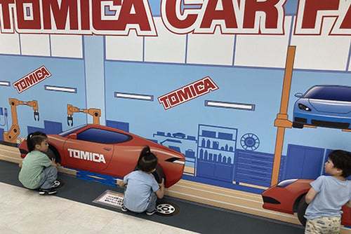 大迫力の展示ゾーンには「トミカ・プラレール巨大ジオラマ」に加え、新しく「おもちゃ箱ジオラマ」「フォトスポット」「タイヤを交換しよう」などを設置。子どもだけでなく大人も楽しめるコーナーが多数用意されている。