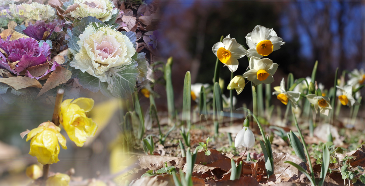 寒さを乗り越えて、園内で開花しようとする花々は