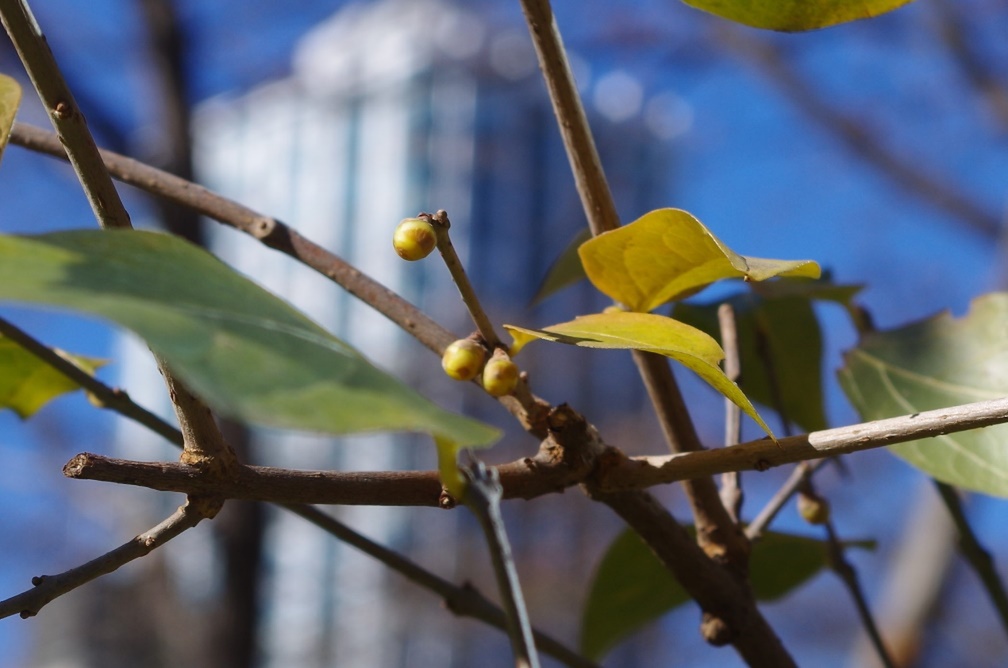 ロウバイのつぼみ(2024年1月6日 「眺望のもり」植え込み 撮影)