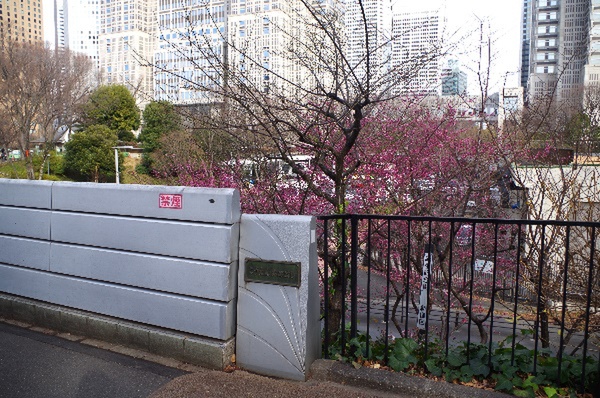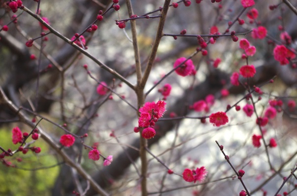 西エリアの橋周辺では、梅の花が咲き始めています。