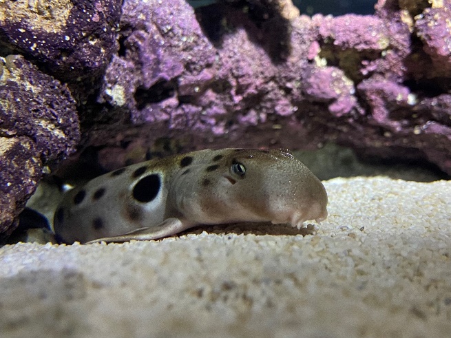 ここでは、胸鰭(むなびれ)を使って海底を歩くように移動するマモンツキテンジクザメ(エポーレットシャーク)や、幼魚期のしましま模様が特徴的なイヌザメをご覧いただけます。