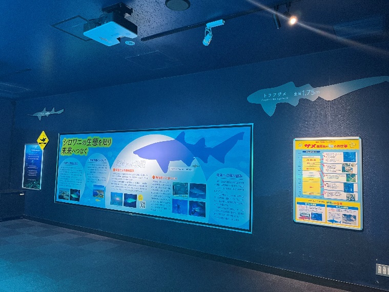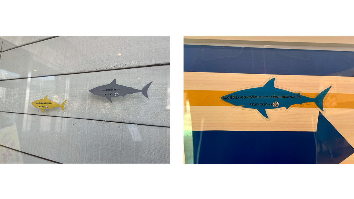 「サメのマメちしき100」と題し、サメに関する100個の知識を館内のいたるところに散りばめました!(実はこれまでにご紹介した写真にもいくつか隠れています!)